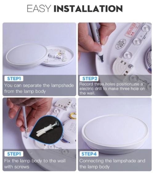 Step3: Fix the lamp body to the wall with screws.